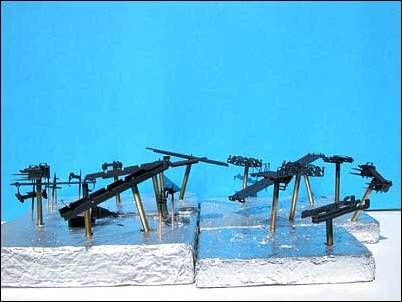 The photos above also show all the other parts after being painted black. After painting each color I baked the parts in a warm oven (125 degrees F) overnight to thoroughly cure the paint. I painted the wheels in a separate batch (sorry no photos) after covering the tires with micro-mask. After the baking I came back and sprayed an overcoat of Testor’s dullcoat on all the black painted parts. On the areas where the decals are to be applied I sprayed Testor’s glosscoat instead.